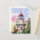Uma pintura de aquarela original de Brenda Thour, da parte superior do farol de Seul Choix, em Michigan, mostrando de cima das árvores com um céu azul, rosa e amarelo no pôr do sol. Copyright de Brenda Thour 2009.