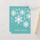 Cartão postal com flocos de neve e estrelas de natação de feriado em turquesa, com uma cascata de estrelas e flocos de neve suspensos. Este cartão postal de mesa de Natal chic e sofisticado é perfeito para o seu Natal ou casamento no inverno! Fácil de personalizar, basta personalizar com o número de tabela apropriado. Clique no botão "Personalizar a TI" para encontrar opções adicionais de personalização.