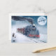 O trem bonito temia cartão postal de Natal com garotas e Papais noeis e Reindeer.