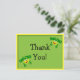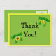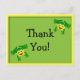Bela data de sapo: "Obrigado". Na frente deste cartão, dois sapos verdes e amarelos engraçados estão sentados sobre um fundo verde com trim amarelo. A parte traseira do cartão é verde, combinando com a parte frontal, e lhe dá espaço suficiente para adicionar sua mensagem. Consulte os convites, botões, adesivos e outros produtos correspondentes.