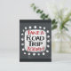 "Faça uma Viagem Hoje" é um design de texto bonito em cinzas com texto preto e vermelho. Ela se senta em uma forma de sotaque branca e bolinhas brancas giras ao seu redor.