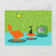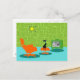 Diz-se que os cães têm donos e os gatos têm funcionarios. O felino neste cartão postal de Gatinho da Idade do Espaço Retroativo não conseguia concordar mais! A design de arte minimalista estilo 1960 apresenta um gato preto elegante numa sala de estar moderna de meio século. A sala sofisticada apresenta uma parede verde de pedra. O tapete é aqua com sombras. Entre as mobílias da sala estão uma figura amarela, a luz do sputnik, uma cadeira laranja com fezes e uma televisão verde com orelhas de coelho. O gato negro sortudo pode ser visto empoleirado nas bancadas em frente à televisão. Seu show favorito está ligado! Na tela da televisão, podemos ver uma família de televisão clássica, preto e branco, resolvendo todos os problemas da vida em um show de meia hora. Esta design é perfeita, se nós próprios o dizemos.