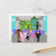 Este Cartão-postal dos Monstros Clássicos de Televisão pode fazer com que todos os dias se sintam como Dia das Bruxas. O retrô, estilo 1960, minimalista, desenho de desenho animado apresenta uma mansão gótica, que é assustadora o suficiente para fazer seu cabelo ficar parado. Se as boas vedações permitem bons vizinhos, então os habitantes desta casa devem ser os melhores vizinhos do bloco. Uma parede roxa de pedra e uma porta de ferro preto, em forma de traço, separam a casa de dois andares com a tinta verde e lubrificante, gramados verdes e cercas brancas de picete em ambos os lados. Não há necessidade de ter um polegar verde para manter este gramado. A paisagem é formada por um morto com ramos negros, espalhados, que se estendem como os dedos enfeitados de uma bruxa. Na frente e no centro, na rua, estão os ocupantes mortos-vivos que assombram esta casa. Vemos um homem de castigo num terno castanho, que tem uma forte semelhança com o monstro de Frankenstein. Ao seu lado, está a sua glamourosa e vampira esposa num vestido cor-de-rosa fluente que solta perfeitamente a pele azul e o cabelo preto longo com faixa branca. O filho improvável do casal é o próximo neste grupo familiar. Júnior pode ser um filhote, mas ele tem todas as marcas de um lobisomem de cheio. Ei! Como um monstro e um vampiro deram à luz um lobisomem? Deve ser magia da televisão! Ao lado de Júnior, vemos uma alma infeliz que não herdou a aparência horrível do resto da família. Como os pobres queridos sobreviverão com aquela figura de ampulheta, pele de porcelana, cabelos loiros e na moda rosa? É melhor que ela se inscreva na faculdade comunitária, se alguma vez quiser enganar um homem! Arredondando esta unidade familiar é um dracula envelhecido em um smoking e caudas pretos. O colarinho vermelho lembra-o do seu refresco líquido favorito. Se o céu acima da casa é qualquer indicação, parece que a vida não será nada além de céu cinza daqui em diante para esses residentes deliciosos e assustadores. Comprar este design espetacular enquanto você tem a chance. Se não, vai assombrá-lo até seu dia de morte - e além!