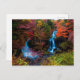 Esta é uma foto de cachoeiras cercadas por árvores coloridas em um cartão-postal.