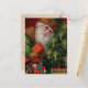 Os papais noeis estão carregados com um saco de brinquedos e muita alegria de Natal. Uma árvore contígua é feita com miçangas brilhantes e velas brilhantes. Os papais noeis desejam a todos um Feliz Natal em letra de ouro. As cores vibrantes e os detalhes detalhados deste cartão postal vitoriano fornecem uma imagem perfeita para a sua correspondência de férias e itens decorativos.