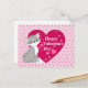 Cartão-Postal Feliz Dia dos Namorados, Patterado Em Corações, Com Cinza De Cartoon Bonita Por Gato