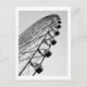Uma fotografia a preto e branco de uma Roda Ferris evoca a atmosfera de feiras tradicionais.