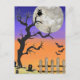 Uma coruja de solitário fica em um cemitério assustador à meia-noite.