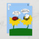 Neste cartão-postal fofo, uma abelha desgastada senta-se numa flor amarela e pergunta, "Por que está me incomodando, senhora?" à qual a joaninha esmagada sentada em outra flor responde, "Bee-Causa você é fofo". Da minha imagem original criada digitalmente.