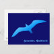 A silhueta (em uma gama brilhante de azuis) de uma gaivota. Crie o seu próprio cartão postal para o seu livro genealógico mudando o nome da cidade para o que corresponde aos seus viagens.