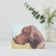 Este cartão-postal apresenta uma reprodução do desenho original a lápis de cor de um setter irlandês.