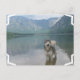 Cachorro malamute do Alaska andando em um lago com montanhas.