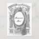 Cartão postal Momento Mori - esta arte vintage é de uma arte funerária/design de xilogravura momento mori e apresenta dois esqueletos em pé em ambos os lados de um escudo/rol em forma oval com muitas outras imagens associadas à morte e momento mori, incluindo uma caveira e numerosos ossos.