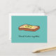 Este cartão postal adorável apresenta duas partes doces de manteiga sufocada sobre uma fatia de torrada. Use este cartão para expressar o quanto você aprecia alguém que ama em sua vida. Você também pode enviá-lo para encorajar colegas de equipe ou um casal especial que você pensa que são excelentes juntos. Envie-o como um cartão postal, ou coloque-o em dentro e um envelope para usá-lo como um cartão de nota fofo.