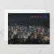 Seoul, Coreia do Sul, com cartão postal noturno, com um horizonte com luzes noturnas da capital sul-coreana e um sinal de Seoul em letras latinas ocidentais e na tradicional tipografia coreana.