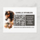 Cartão postal de negócios com código QR com um design moderno, artístico e de flores. Excelente para fazendas, estábulos e outros negócios. O código QR na frente pode ser usado para seu compro online ou site. Combinação de excelentes tradicionais e digitais para atender às suas necessidades. A frente também tem espaço para seus produtos e serviços como equestres, aulas, equitação e embarque. Personalize o texto. Use a modelo para criar seu próprio cartão postal comercial com o código QR.