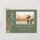 Floral De Foto Verde Salve O Cartão-Postal De Data. Esta na moda e elegante foto Salve o Cartaz do anúncio da data contém lindas flores silvestres de cor d'água pintadas manualmente organizadas em um adorável buquê perfeito. Encontre itens correspondentes na Coleção de Casamento de Bóvora Verde Sage.
