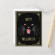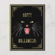 Cartão-postal de Gato Negro Elegante Halloween. Negro e ouro (o ouro não é ouro real, mas cor). Gato sibilante com olhos ouros, dentes brancos, língua e nariz cor-de-rosa. Fundo preto, borda do estilo de deco de arte ouro. Texto do ouro. Elegante, moderno e divertido.