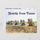 O cartão postal do cadillac Ranch apresenta os Cadillacs clássicos enterrados nariz perto de Amarillo, Texas para um Howdy do Texas.