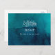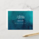 Este moody canto de aquarela do oceano cartão postal RSVP é perfeito para o seu simples casamento de vassoura tropical. Ele é projetado com folhas tropicais brancas minimalistas e um impressionante fundo azul-esverdeado.