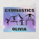 Gymnastics Postcard - Tem um belo fundo ombre estrela de turquesa roxa e silhuetas de ginástica fazendo uma variedade de habilidades e eventos de ginástica! Pode ser personalizado com o nome do seu ginasta!