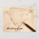 Uma pilha de cartões postais vazios com uma caneta de fonte, amontoada em sepia. Perfeito para qualquer ocasião, com a inscrição: pensando em você. Totalmente personalizável para personalizar como quiser!