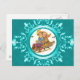 Cartão postal, Vintage Boy abd Girl em uma pista de asa ou Insira sua foto em uma imagem azul de floco de neve azul com rolagem Design