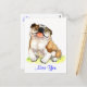 Quem consegue resistir ao rosto do cachorro-da-puta inglês? Este cartão-postal apresenta um desenho animado com sorte para o Bulldog pup em um fundo branco nítido. Este canalha feliz quer ajudá-la a enviar saudações para todos os seus amigos e família. Cartões postais são um alternativo econômico para cumprimentar cartões quando você quer que alguém saiba o que pensa deles.