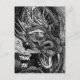 Um dragão esconde-se numa caverna subterrânea. Cartão postal com um design personalizável preto-e-branco para personalizar com seu próprio texto, imagens e ideias. Um desenho de tinta original de Jess Perry.