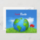 Belo Dia da Terra Cartão postal com ilustração terrestre sobre grama verde com flor vermelha e céu com nuvem no fundo