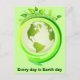 A terra em tons de verde, com a expressão "todos os dias é o dia da Terra", Vamos que a mantém verde com formas sustentáveis de produção de comidas e utilização sustentável de energia limpa