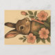 Carte postale lapin retro mignon, fleurs