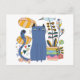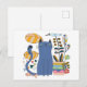 Carte postale "Gato e ave lindos" "Chat et oiseau mignons" style Naïve Art -