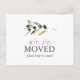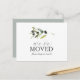 Compartilhe seu novo endereço com o charme de eterno usando estes cartões postais de anúncio de movimentação botânica de aquarela. Apresentando folhagem verde pintada manualmente em um layout limpo e minimalista, este elegante design é perfeito para amantes da natureza e fãs do estilo orgânico e moderno. Estes cartões postais planos são fáceis de personalizar e fazem uma maneira bonita e econômica de se manter conectada. Ideal para novos donos de casa, motoristas ecologicamente conscientes, ou qualquer pessoa que busque uma maneira simples e na moda para dizer "nós nos mudamos." Impresso em estoque de cartão de alta qualidade com espaço para sua mensagem e endereço. Visite DoTellABelle no mercado Zazzle para ver mais cartões de anúncio em www.zazzle.com/dotellabelle.