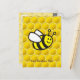 Cartoon voador de abelha sorridente sobre fundo de colmeia de abelha sem costura.
