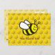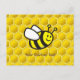 Cartoon voador de abelha sorridente sobre fundo de colmeia de abelha sem costura.