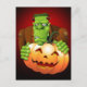 Cartão Postal Cartoon Frankenstein Monster com Pumpkin