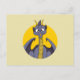 Cartão-postal com ilustração da cabeça de um pequeno dragão roxo giro em círculo amarelo, fantasia fofa / design de conto de fadas para crianças por Maxi Harmony, roxo