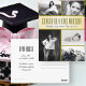 Colagem de fotos, cartão postal de pós-graduação da filha com cinco modelos de fotos na frente. Convite de festas de formando personalizado para um formando feminino. Personalize com imagens antigas e novas de anos de vida dos jovens formando, ou inclua hobbies, esportes, animais favoritos, etc. Quatro imagens devem ter o tamanho 4 x 6 horizontal e uma vertical. A cor de fundo é verde-oliva para corresponder à altura moderna, o texto impresso diz "Parabéns" (adicionar o nome do formando). Uma "fita" dourada amarela contém o texto com mais modelos atrás para informações sobre festa/casa aberta.