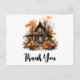 Cartão Postal Casa Assombrada com Abóboras de Halloween Agradeci