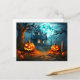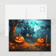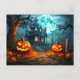 Este cartão-postal super assustador do Dia das Bruxas apresenta uma casa assombrada e algumas abóboras nefastas brilhando, à luz da lua.