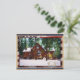 Um belo linho personalizado e personalizado - Casa de Cabana de Troncos Arquitetura Rústica Rural mais uma moldura de bandeira vintage com iniciais monogramadas e uma fonte de cor vintage/retro e fundo de cor de fonte Postcard.