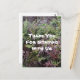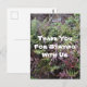 Agradeça seus hóspedes por ficarem em sua casa de aluguel com este cartão postal barato com uma foto da natureza de samambaias da floresta verde. Estas belas plantas verdes e vermelhas preenchem a frente deste cartão postal junto com "Obrigado por ficar conosco". Personalize facilmente se desejar.