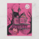 Cartão Postal Casa de Halloween Assombrada Rosa