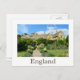 Cartaz fotográfico de uma mansão, uma grande casa inglesa, com um jardim floral e um caminho em Chipping Campden, em Cotswolds, Inglaterra, Reino Unido, com uma fronteira branca e o texto: "Inglaterra".