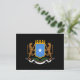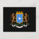 Design com emblema nacional da República Federal da Somália com dois leopardo a suportar um escudo azul com uma estrela no meio