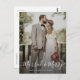 NATAL, anúncio de casamento de cartão de Natal com escrita branca e uma mensagem de agradecimento aos seus convidados. A imagem do casal pode ser personalizada.