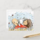 Este cartão postal personalizado oferece uma ilustração fofa de um homem careca, um filhote branco e uma mulher morena. Esta é uma design para enviar mensagens "nós sentimos sua falta" ou "nós te amamos" para seus amados. Você pode personalizar os três nomes no design.