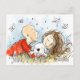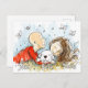 Este cartão postal personalizado oferece uma ilustração fofa de um homem careca, um filhote branco e uma mulher morena. Esta é uma design para enviar mensagens "nós sentimos sua falta" ou "nós te amamos" para seus amados.
