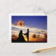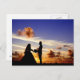 Uma silhueta de um recem casados casal, de mãos dadas, ao pôr do sol.